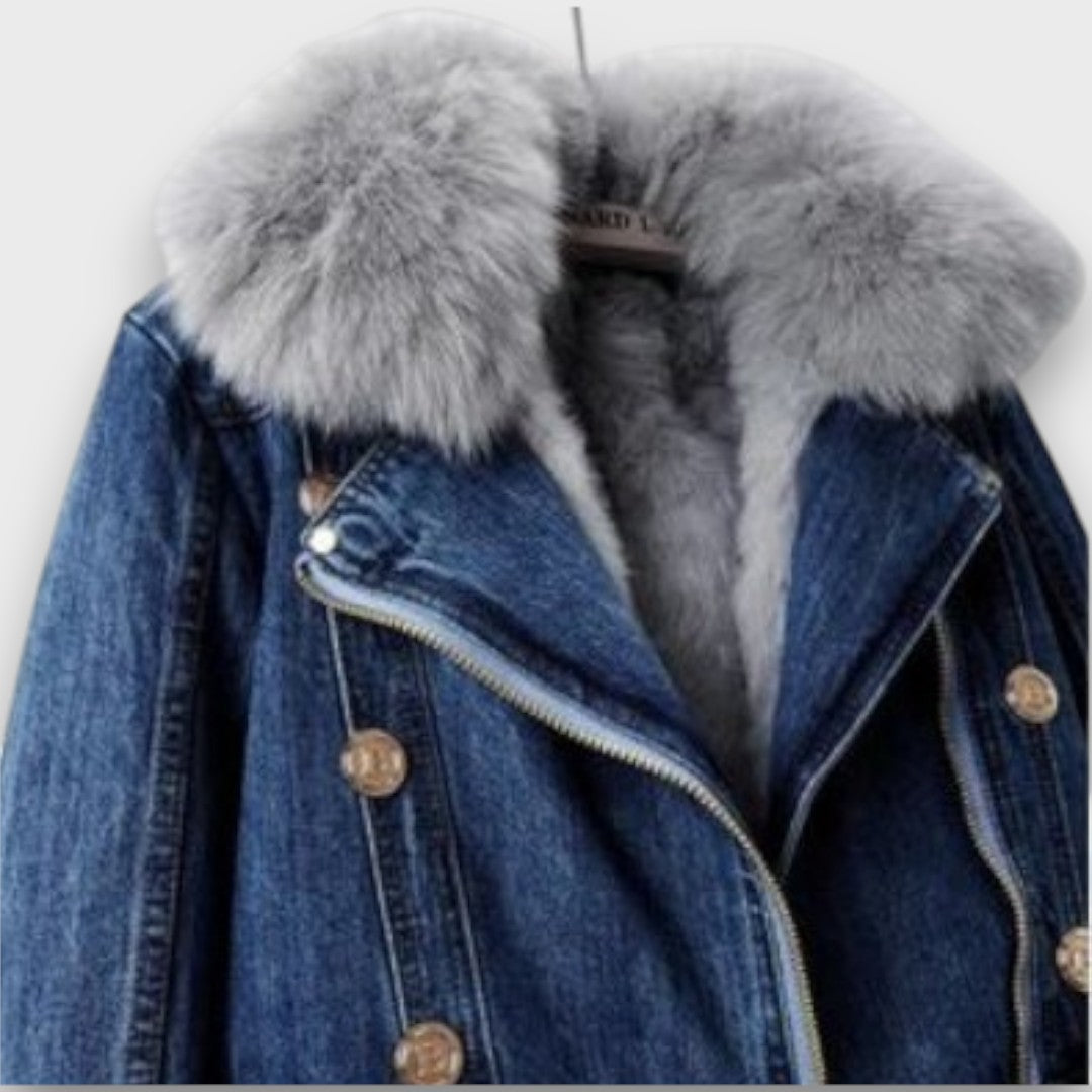Phylicia blends the cool edge of classic denim with the luxurious softness of plush faux fur, creating a winter statement piece that feels both warm and effortlessly stylish. Its structured silhouette, cozy lining, and striking details turn even the simplest outfit into something elevated and unforgettable.