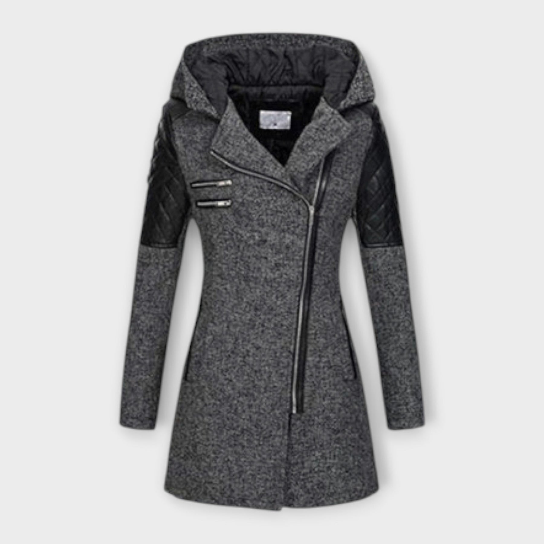 Sophia combines modern design with functional warmth. The coat impresses with its clean lines and the combination of smooth and textured finishes on the sleeves, giving it an urban character. The hood and the asymmetrical zipper complete the look and make it a standout piece in the cold season.
