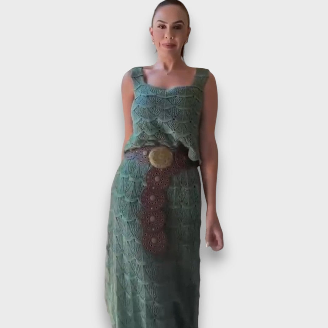 Brilene – Two-Piece Set with Crochet Pattern Top and Skirt